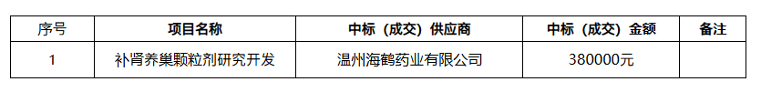 关于温州市中医院补肾养巢颗粒剂研究开发的中标(成交)结果公告