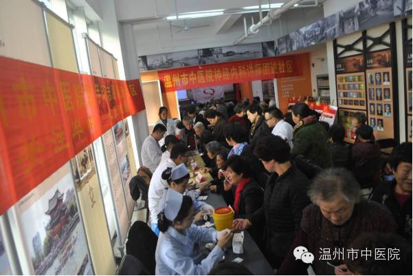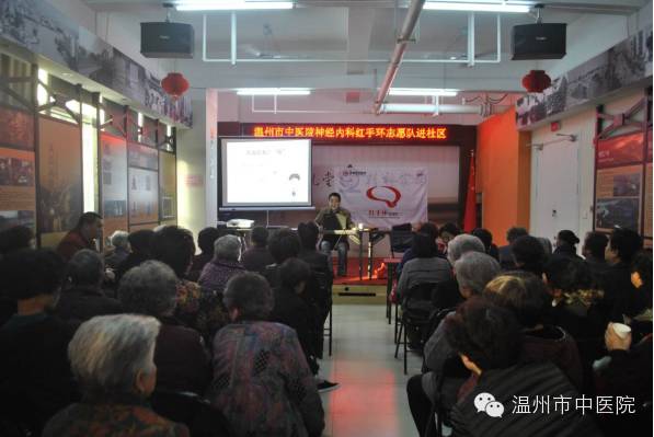 为积极响应中国卒中学会发起的红手环志愿服务活动,宣传脑卒中的科普知识,提高居民自我保护意识,温州市中医院神经内科在胡万华主任的带领下组建了红手环志愿者服务队。12月4日,该志愿服务队与科普讲师团一并走进景山街道西山社区综合服务中心,开展了以“关注卒中,心系健康,志在普安”为主题的科普及义诊志愿活动。