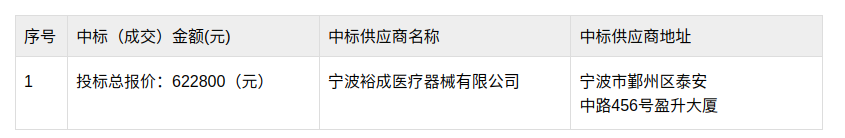 关于温州市中医院一批设备采购项目的中标(成交)结果公告