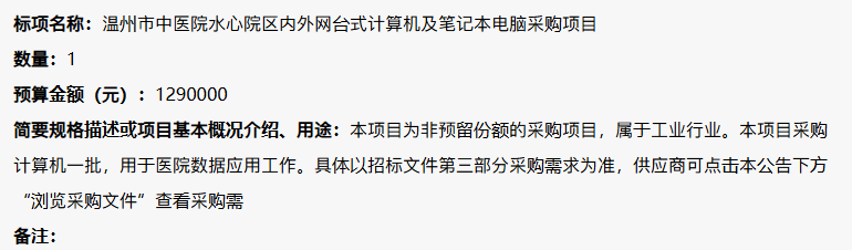 温州市政务服务管理中心(温州市政府采购中心)关于温州市中医院水心院区内外网台式计算机及笔记本电脑采购项目的公开招标公告