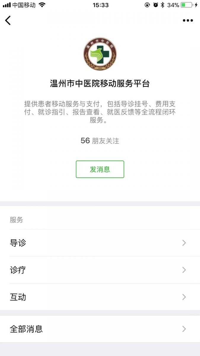 我院移动服务平台又添新功能来我院就诊时,关注微信公众号“温州市中医院移动服务平台”,就可以挂号、缴费不排队!检查报告不等待,手机结果一键查!相信很多人都体验过。为让大家体验更方便更快捷的就诊服务,“温…查看详情+