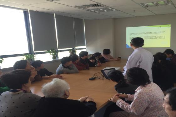 患教活动-如何让肿瘤患者活的更阳光4月17日下午,肿瘤科示教室内挤满了听课的“学生”,以至于示教室内小板凳都坐不下了,只能围着桌子站到两边。他们认真地等待“老师”的到来。这些“学生”正是肿瘤科的患者及家属。而讲课的“老师”就是肿瘤科帅气的…查看详情+