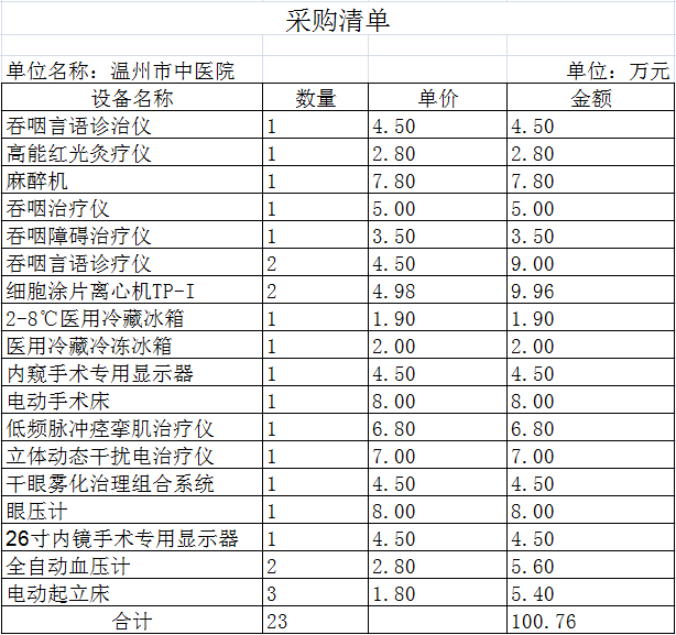 温州市中医院医疗器械展会采购清单
