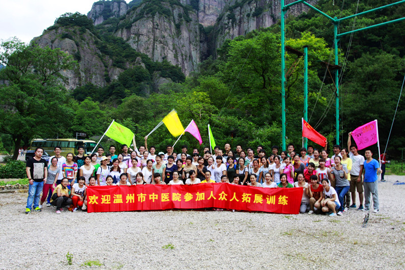 另讯:9月9日,我院组织新职工奔赴雁荡山进行了为期一天特殊的素质拓展训练。85名职工分为6组,队员们竭尽全力发挥智慧,在规定的时间内完成了任务,想出来了具有代表意义的队名、队训、队歌及设计好了的队旗并且用独特的表演方式展现出来。