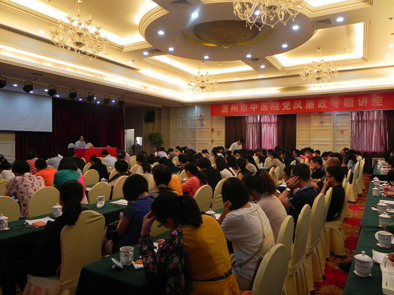 9月20日下午,我院在温州国贸大酒店多功能厅举办温州市中医院2012年党风廉政专题讲座报告会。会议由院纪委书记黄爱林同志主持,院领导班子、全体党员及中层干部近200余人参加了会议。