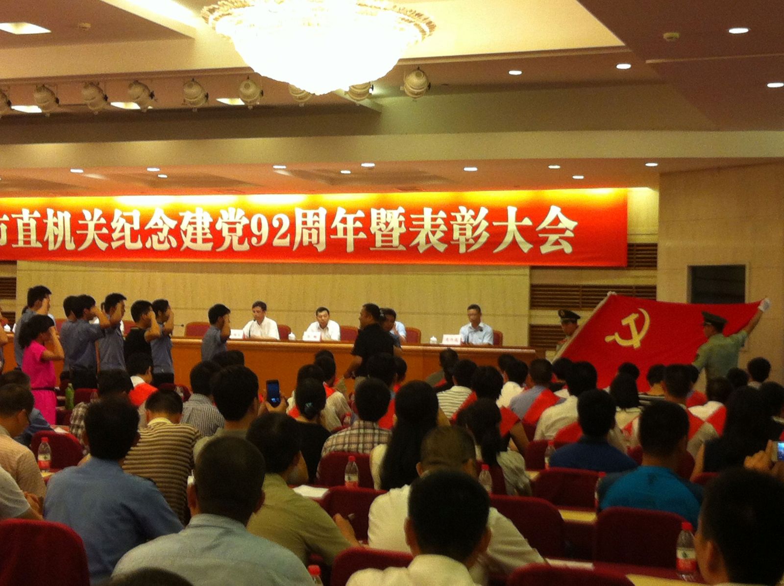2013年6月28日下午,市直机关纪念建党92周年暨表彰大会在市人民大会堂举行