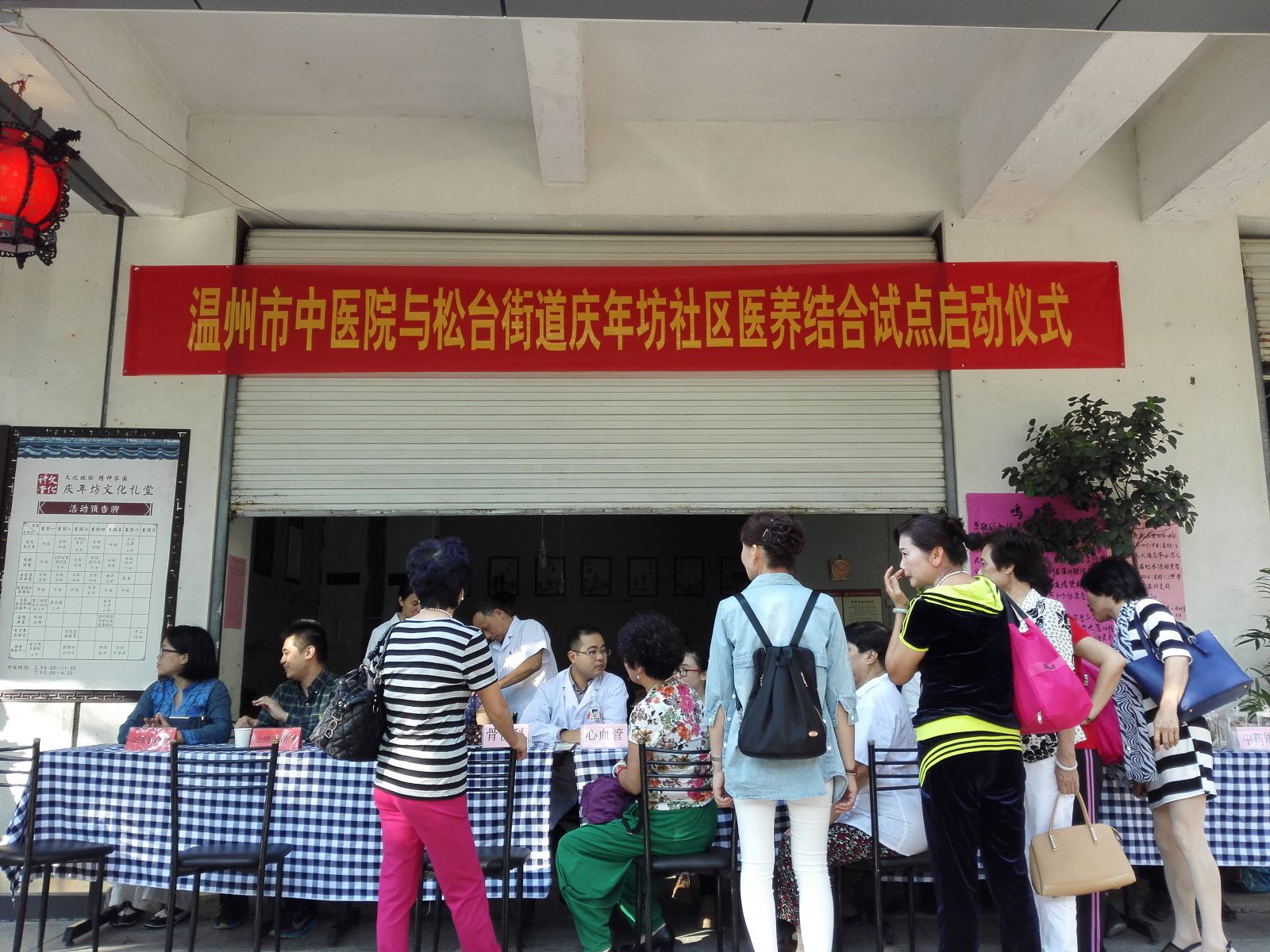 10月21日重阳节上午,温州市中医院与松台街道联合创建社区医养结合试点启动仪式在庆年坊社区举行。松台街道党工委委员蔡云云、庆年坊社区书记兼主任乐素贞、市中医院院长黄建平、松台街道和庆年坊社区居民代表等出席了仪式。
