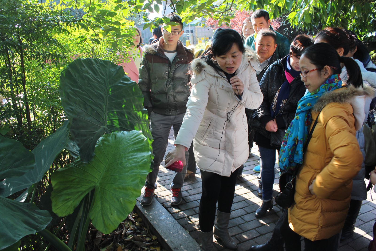 (百草园认识药材。由朱雪梅主任带领大家边走边认识身边的药材。百草园里很多都是生活中常见的药材,所以大家都积极提问。朱主任都耐心地进行了解答)