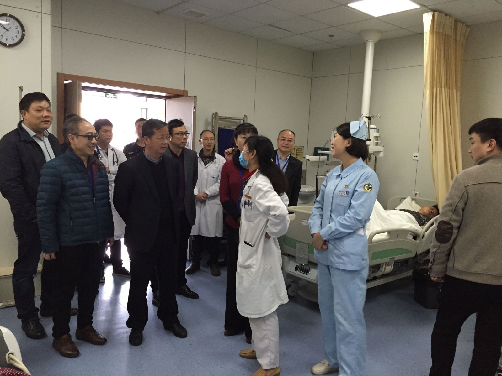 2月12日,是春节长假后我院第一个工作日,12日上午,市卫计委主任程锦国、副调研员朱国晓等领导一行来我院,向我院坚守在一线工作岗位上的医务工作者送上节日的慰问和新春的祝福。每到一个科室,程锦国主任都亲切地与职工握手,对他们的辛勤工作表示了肯定。随后,程锦国主任一行还来到我院六虹桥院区续建工程工地,了解工程进展情况。