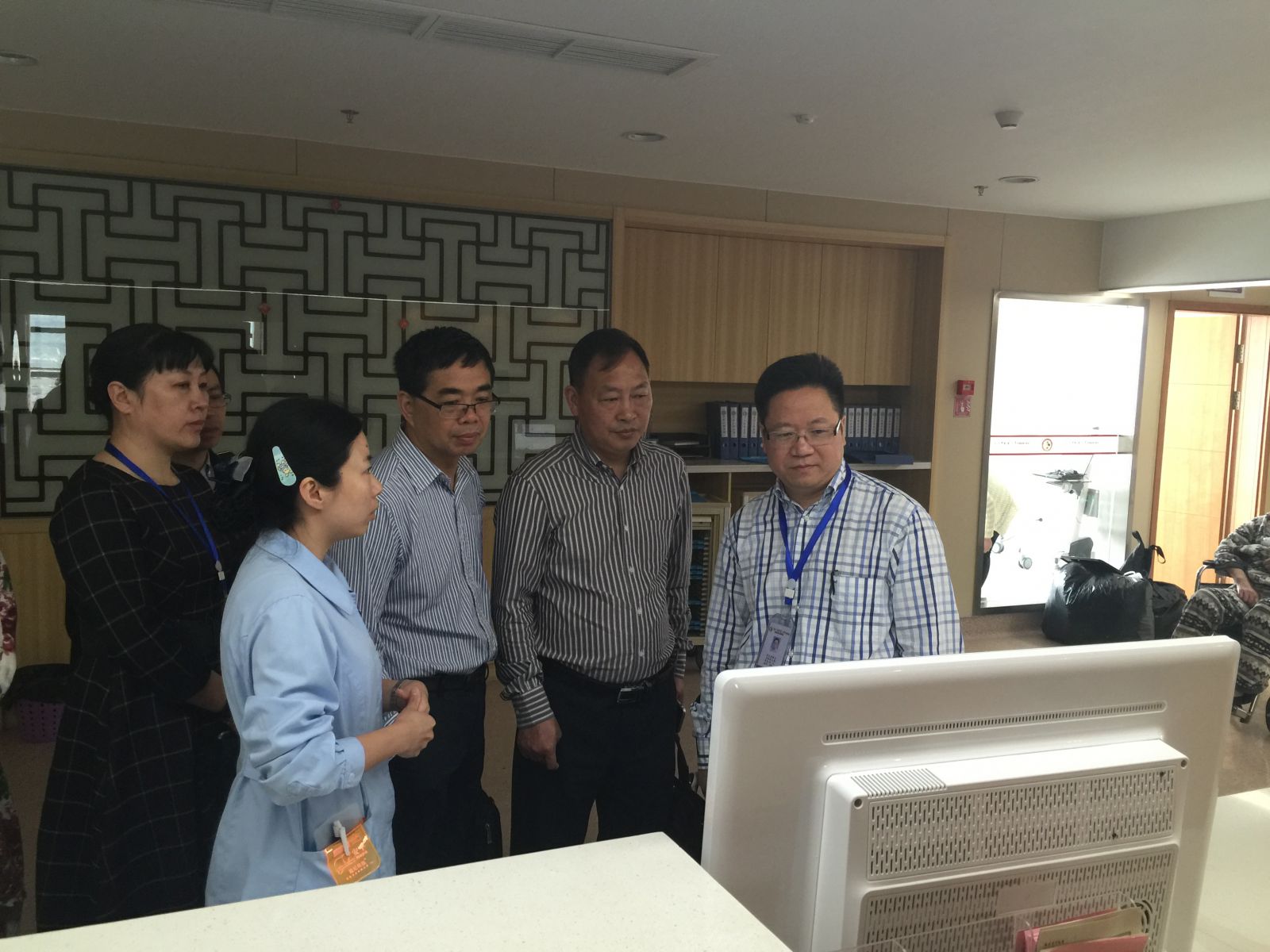 我院黄建平院长及黄爱林副书记陪同他们先后参观了医院的硬件设施及先进的“物流小车”系统及中西药房的自动配药机、免煎颗粒自动包装机等;并在15楼病区参观了静脉注射实时监控系统。