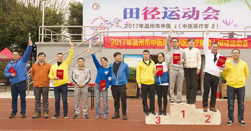 2017年11月26日,在瓯海职业中专学校,召开了温州市中医院(中医医疗集团)田径运动会。大会的宗旨是:“健康团结、创新绿色”,全面增强职工体质、丰富医院文化生活。