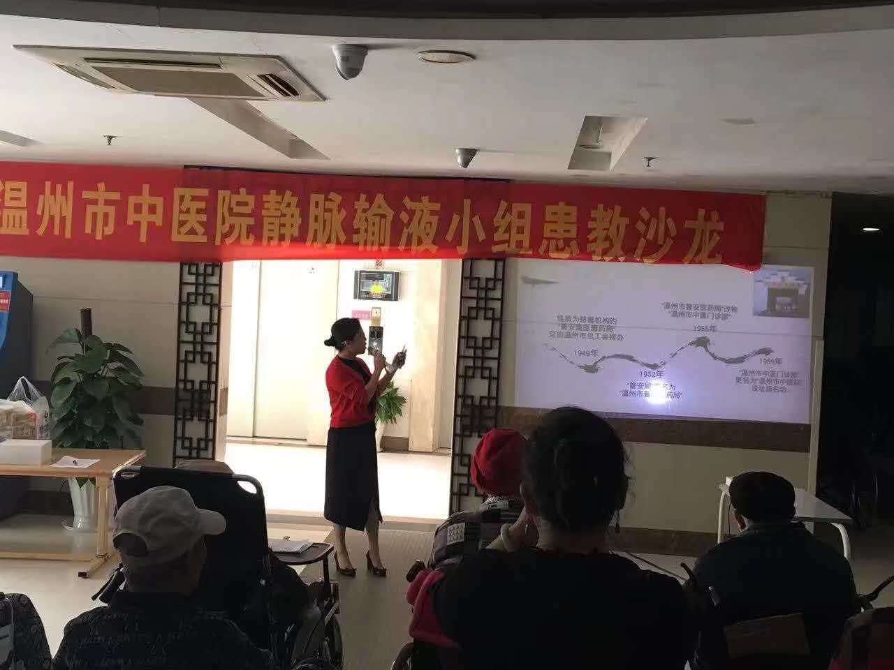 为进一步普及静脉置管维护知识,4月中旬我院在景山院区举办了温州市中医院输液小组患教沙龙。本次沙龙邀请了景山院区病员、陪护及家属、静脉输液小组全体成员共同参加,由中医院康复科钱利娜护士长主持。