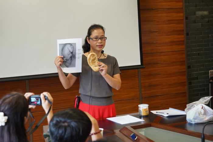 除此之外,我院还安排了专业的耳穴操学习课程,由我院质管科黄香妹副科长指导大家学习。降血压的穴位、安神的穴位,让第一次接触耳穴操的泰国学生们感觉十分新奇,纷纷跟着揉耳按穴,学习气氛十分热烈。