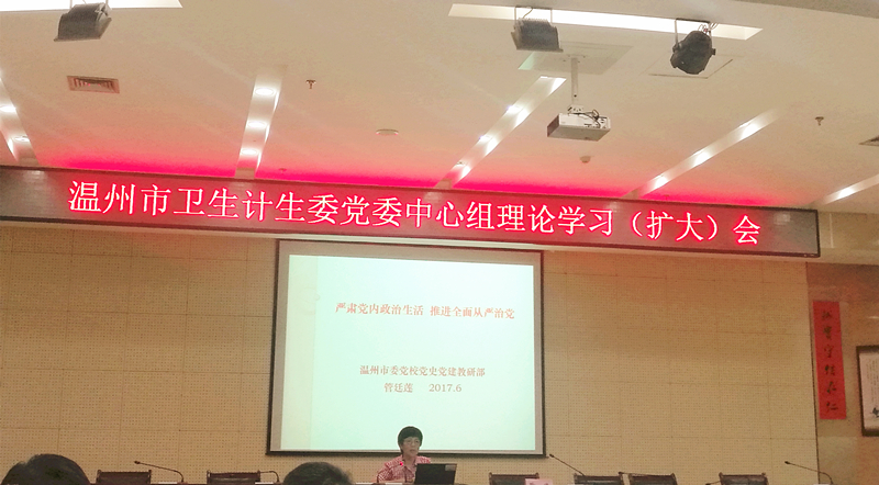 会上市卫计委党委书记、主任程锦国发表重要讲话,传达了省第十四次党代会精神,市委党校党史党建教研部管延莲教授作了题为《严肃党内政治生活 推进全面从严治党》的党课讲座。在2016-2017年市卫生计生系统表彰大会上,我院门诊党支部荣获先进基层党组织称号;我院张航同志荣获优秀党务工作者称号;我院何民、王洁两位同志荣获优秀共产党员称号。