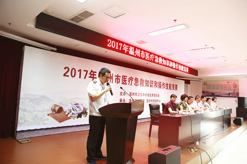 9月21日到22日,由温州市卫计委主办,我院和温州市急救中心承办的温州市医疗急救知识和操作技能竞赛在我院六虹桥院区和市急救中心举行。市卫计委胡方杰委员、市人力资源和社会保障局职业能力建设处张剑晓副处长、市总工会职工技术协作办公室周跃副主任,市卫计委医政医管处毛瑞昂副处长、我院党委副书记黄爱林、市急救中心甘桦主任等领导出席了开幕式,开幕式由市卫计委组织人事处周峰副处长主持。来自全市18家医院的共115名医务人员参加了竞赛。