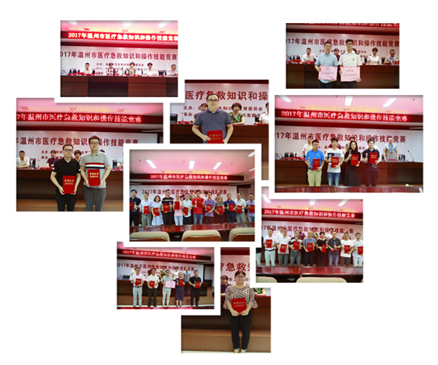 经过激烈的角逐,温州医科大学附属第一医院和温州市中医院获得急诊岗位团体奖一等奖;温州市中医院林德照,潘一鹏获得个人奖心肺复苏按压能手第一名;温州市中医院吴静获得个人奖急诊岗位读片能手第一名;温州医科大学附属第一医院蔡学定获得个人奖常规技能操作能手第一名;温州医科大学附属第一医院吴一旭获得个人奖急诊技能操作能手第一名。