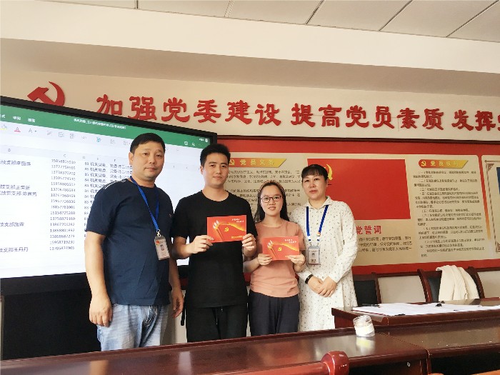最后夏书记反馈我们医技党支部最近的工作安排;通报第三季度党员先锋岗评选,祝贺影像科的彭多禄同志当选,希望全体党员再接再厉,学习榜样,发挥党员的先锋模范作用;并为十月入党的林春春同志和彭多禄同志送上了生日祝福。