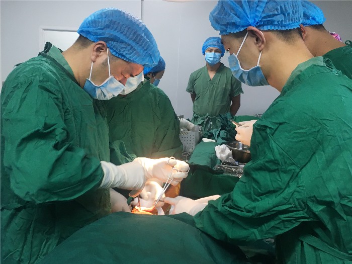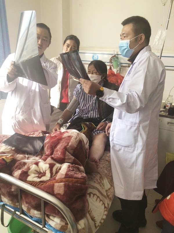 到院第二天,李主任、郑医生就不顾严重的高原反应,到病房开始术前评估、术前访视,并积极与当地医师商讨手术方案。