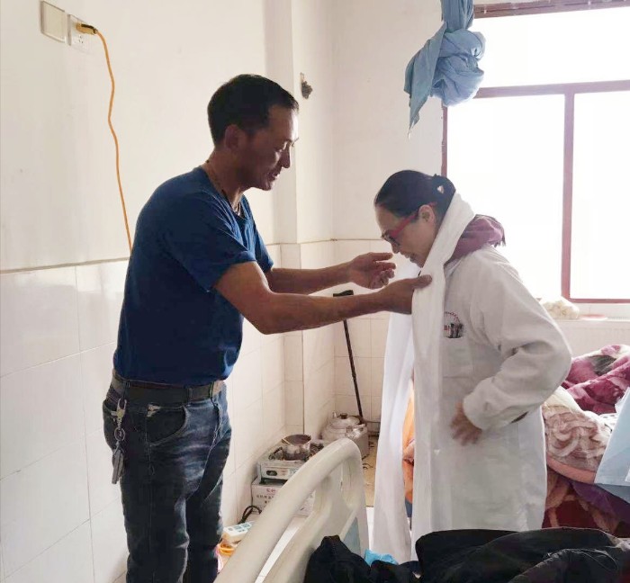同时介绍了好几种网络平台学习专业知识的途径给她们,让她们养成平时随时随地学习的习惯,不断提高自己。并给了她们自己的微信号,让她们可以随时联系我咨询求助。 在阿坝县藏医院医疗援助的时间里,作为一名九三学社的成员,我全心全意地帮助她们建设科室、提高她们的专业知识和技术,手把手教会她们“分段诊刮术、吸宫术、绝经后取环术、创口皮内缝合"等各种操作,并带她们妇产科医生独立开展了"卵巢囊肿手术",希望在有限的时间内带给她们真正有效的传帮带效果。