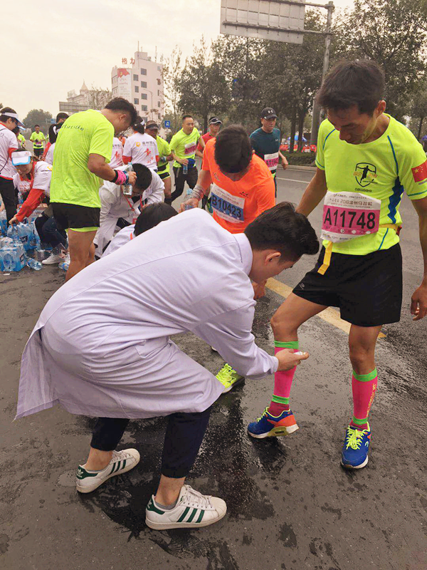 温州马拉松作为大型赛事活动,人群活动密集,需要全方面保障。接到市卫计委委派任务后,我院成立了“温马”医疗队,包括院内急诊绿色通道医疗队、流动医疗队、固定点医疗队,全面完成医疗保障方案制定和落实。