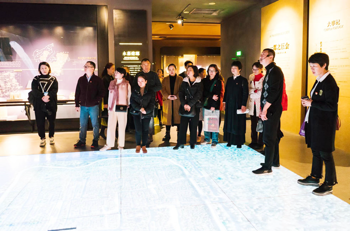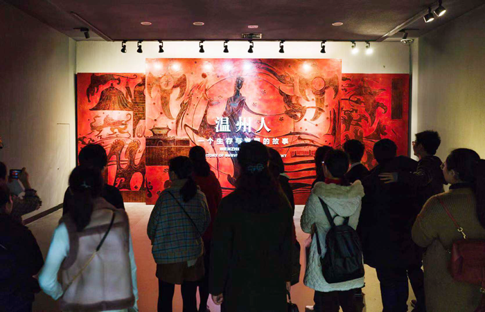 一进入博物馆中厅,花岗岩壁面悬挂“盘古开天”等九幅中国传统神话题材的铜质深浮雕,力图表现博大精深历史悠久的中华文明。面积二干一百平方米的历史馆,则展示了“温州人”五干年足迹,跟着讲解员的脚步,党员们一边参观、一边交流,对温州的历史文化有了更深入的了解。