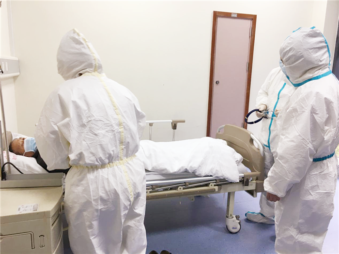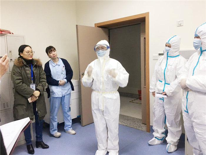发热门诊医生引导病人至发热病房进行留观隔离