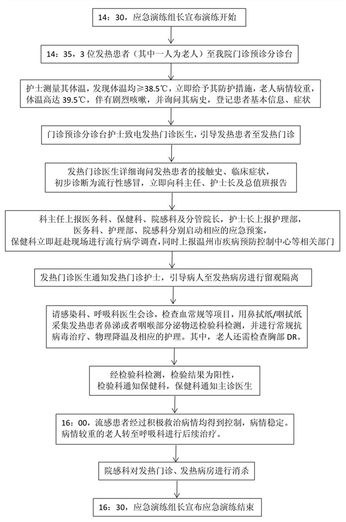 本次流行性感冒暴发应急演练主要包括事件发现与报告、医疗救治、点评三部分。本次演练提高了参与者对流行性感冒暴发应急处置的程序、重要环节和相关细节的认识,从而提升了温州市中医院应急队伍应对重大突发公共卫生事件的实战水平。