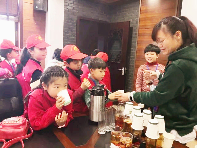 工作人员还为小记者和家长们贴心地泡制了花茶。