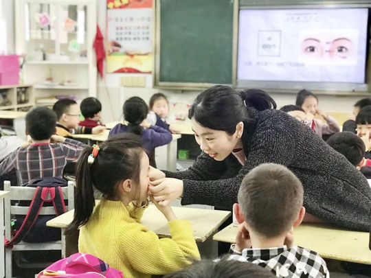 此次活动由针灸推拿科主治中医师王歆婷同志做为主讲,在二年年级的课堂上用通俗易懂的语言向小朋友们讲解了眼保健操中穴位的正确位置、保护视力的正确坐姿及如何养护眼睛、预防近视。