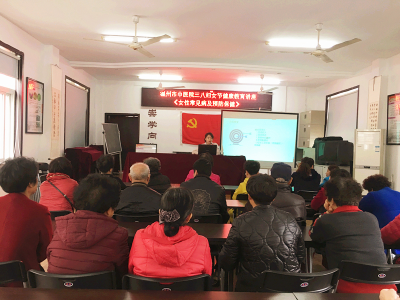 在三八妇女节临近之际,我院举办了多场妇女节健康教育讲座。3月5日,在水心桂柑社区居家养老服务中心,我院中医妇科胡欣欣医师为到场的女性朋友们主讲了《更年期女性综合保健》,讲座后,我院护士章州诗带领女性朋友们学习了经络操,现场气氛活跃。3月6日,中医妇科颜晓钏医师在水心社区居委会为女性朋友们讲授了《女性常见病及预防保健》,护士夏施施同样带领现场的女性朋友们学习了经络操。医师专业的讲说,讲座实用的内容,以及经络操良好的效果,贴合女性朋友们的需求,受到了热情的欢迎和好评。
