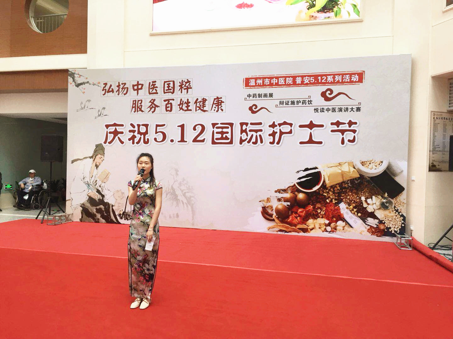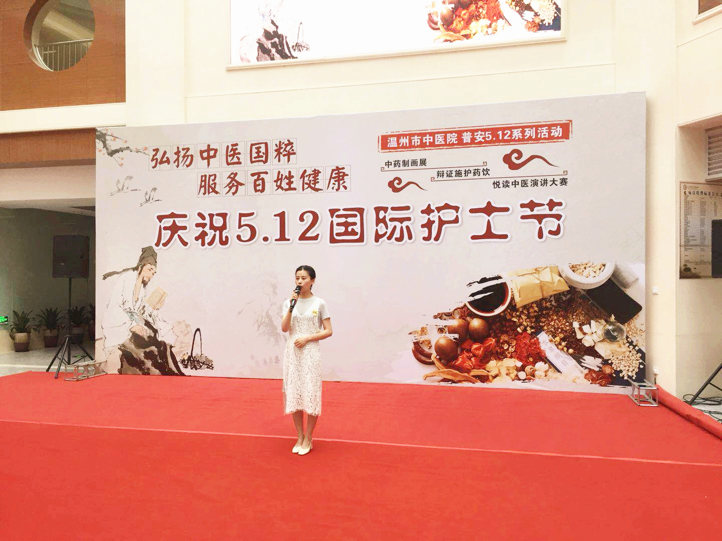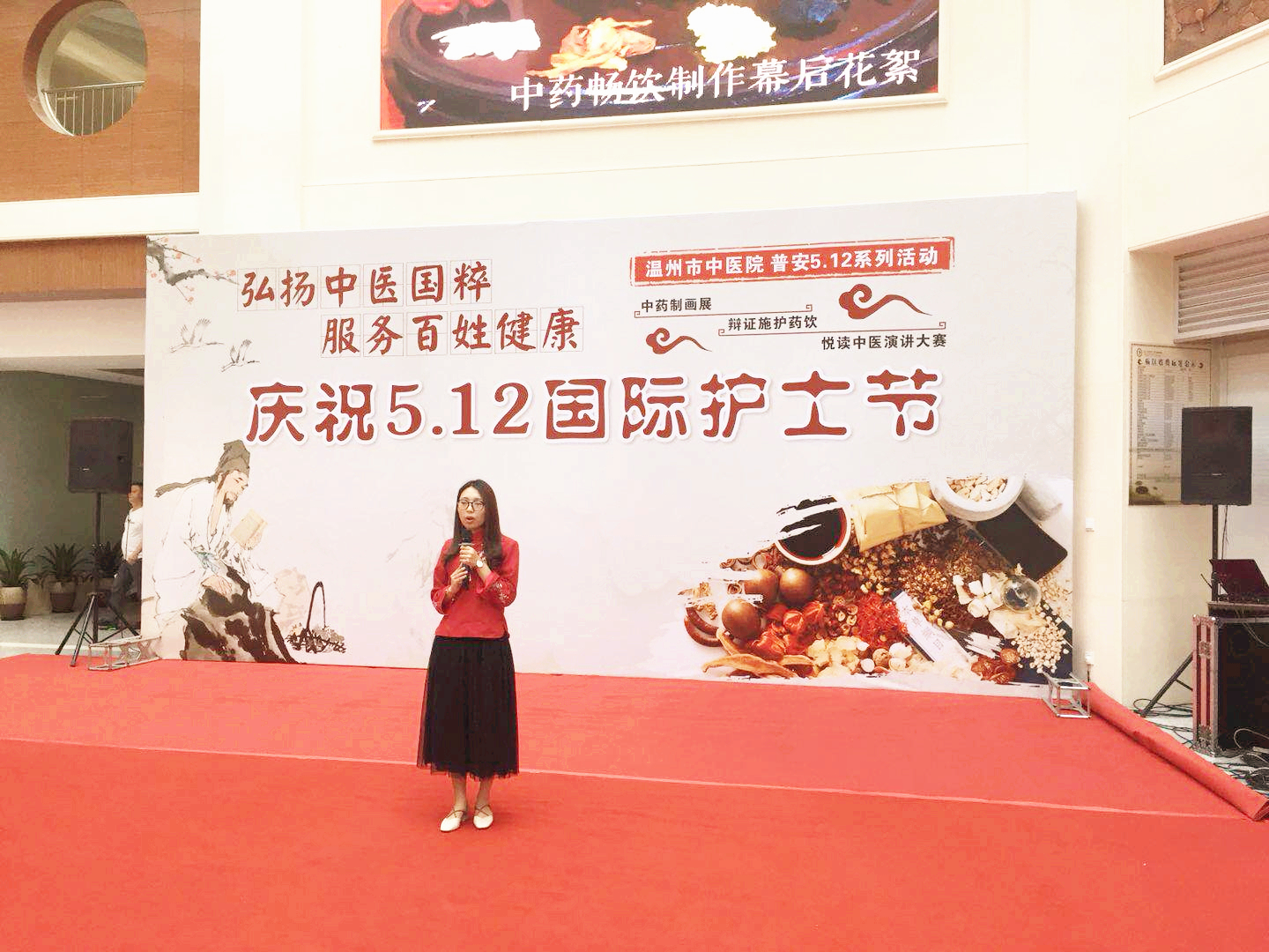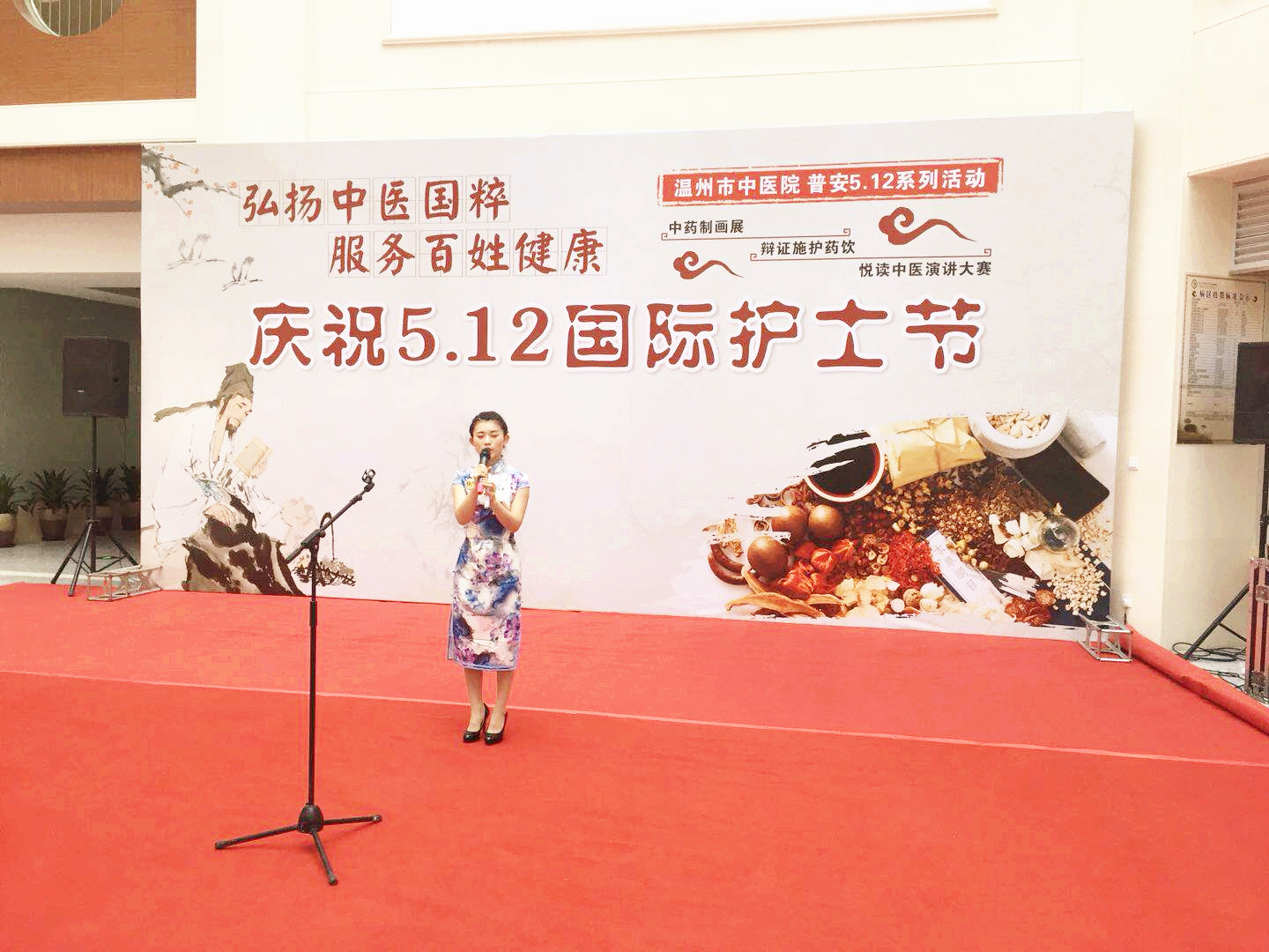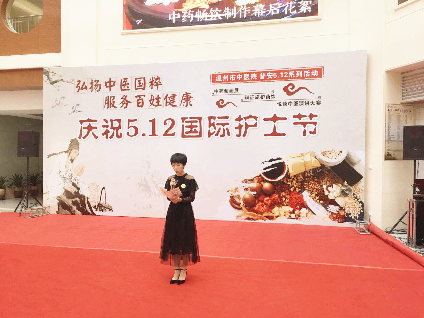 5月11日下午,我院举办普安月系列活动之“弘扬中医国粹,服务百姓健康”的主题活动,活动内容丰富多彩,其中悦读中医演讲大赛得到了各护理单元的踊跃参与。我院王庆来院长、施仲义副院长、麻瑞龙副院长、朱文宗副院长、赵永强副院长、缪心军副院长、曹文瑛总会计师、工会委员金瑞芬主任、中药房朱雪梅主任、孙乐(都市报记者)担任演讲大赛评委。