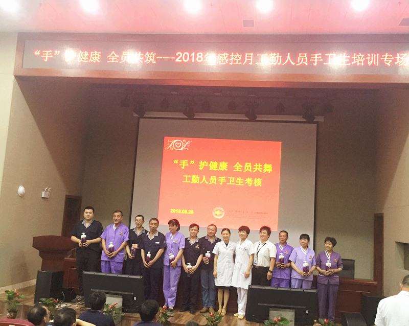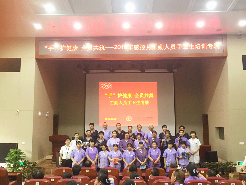 2018年5月28日中午,医院感染管理科配合外包工勤人员管理公司在综合楼八楼会议室开展以感控月系列活动为载体的手卫生专场培训,宣传感控共参与,手卫生人人都掌握。培训内容包括观看手卫生相关视频、示范七步洗手法与现场考核。培训现场工勤人员认真观看视频,并不时地跟着节奏练习。视频结束后,院感科工作人员逐一对工勤人员的指甲、戒指等进行检查并考核七步洗手法,分出熟练、合格、补考档次。最后评出一等奖10名,二等奖20名,三等奖30名,分别给予相应奖励。此次活动得到了大家的肯定与欢迎。