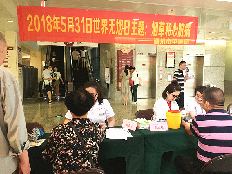 为进一步加深门诊病人对吸烟危害的认识,同时筛查心血管疾病的高危因素高血压与糖尿病,今天上午,我院预防保健科在门诊大厅组织了无烟日义诊活动,为在场群众免费测血压、血糖,并发放宣传资料及小礼品若干。此次活动还邀请呼吸科刘刚主任和心内科蒋芙苓医生为现场患者答疑解惑。
