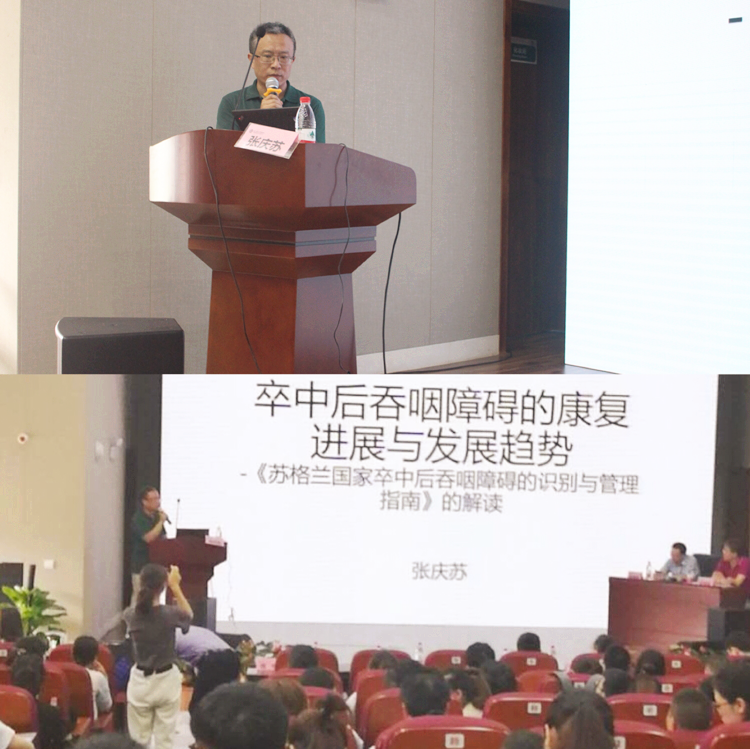 中国康复研究中心张庆苏教授主讲了《卒中后吞咽障碍康复进展及发展趋势》。他围绕吞咽功能的筛查,设备评价,康复治疗,治疗效果等各方面阐述了康复进展及趋势。
