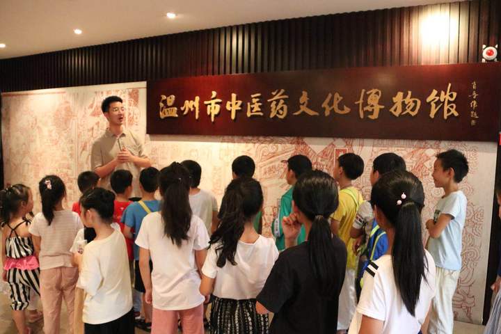 带着对中医药的好奇,小朋友们在博物馆人事科工作人员林立的带领下,走进温州市中医药文化博物馆。在这里,小朋友不仅了解了温州中医的起源,中医的典故,还了解了"永嘉医派"的研究、温州近现代名中医的介绍、温州各县市中医医院的历史传承与创新发展、温州近现代名中医的介绍以及中医药书籍、器物等,小朋友们认真地听着林立老师的讲解,生怕漏掉了知识点。