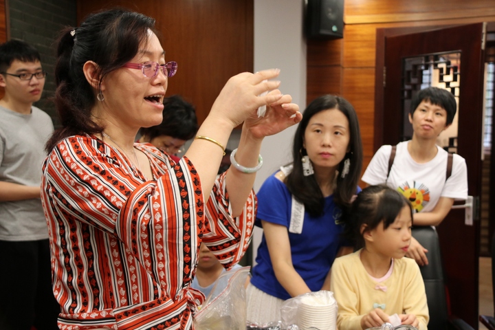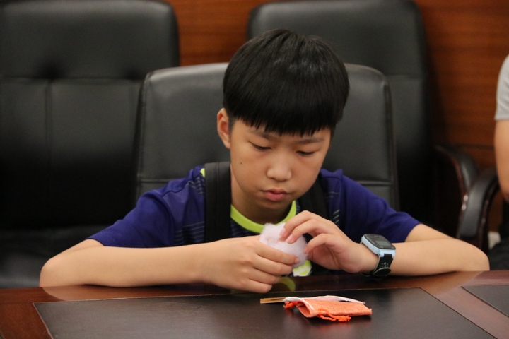 参观完中医药文化博物馆,神经内科黎斌主治医师给小朋友们上了一堂中医养生课。他通过分享神医华佗给关羽"刮骨疗毒"的故事来引起小朋友对中医学的兴趣后,给小朋友们分享了合谷穴、足三里、内关穴、百会穴等穴位的位置、取穴方法、主治病症,这些穴位对改善牙痛、头痛、情绪紧张、改善消化不良、防治感冒发烧有一定的疗效,还有经常敲打足三里对小朋友高长也有一定辅助疗效!中医院工作人员还为小朋友和家长们贴心地泡制了秘制草药花茶,并与小朋友们一起制作了兼具驱蚊和防病安神功效的中药香囊。