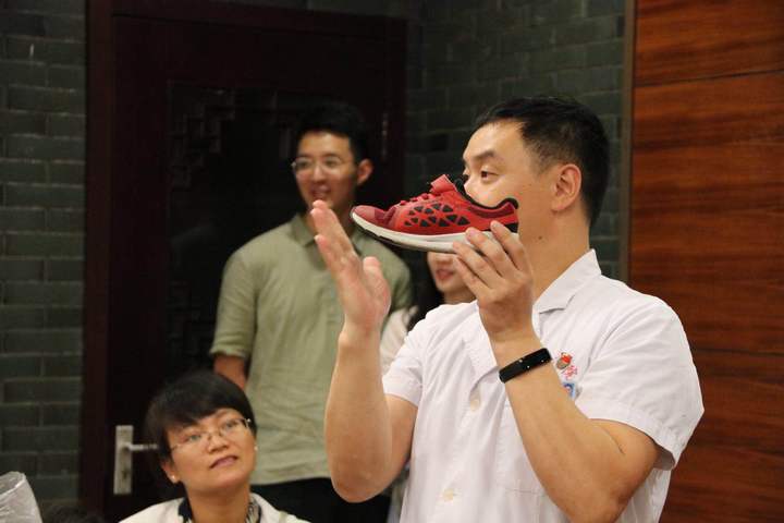 随后,康复治疗部主管技师章国伟为在场的小朋友及家长详细讲解了如何为孩子挑选一双合适的鞋子,还介绍了孩子运动时对场地的选择。最后,章国伟为部分小朋友进行了脊柱测弯检测及足形的生长情况。