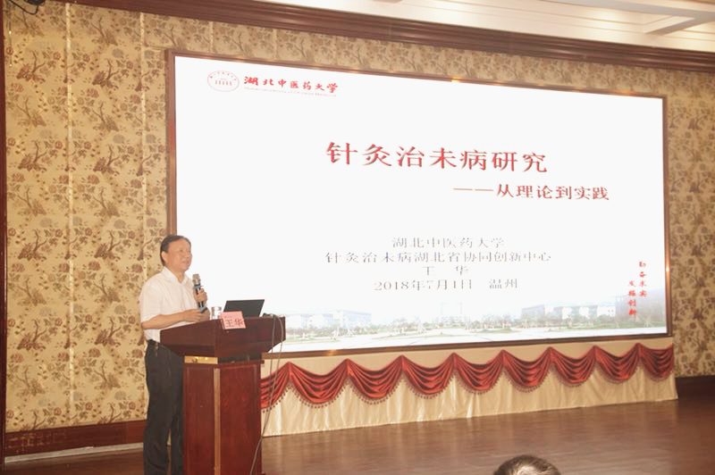 王华教授在会议上做了“针灸治未病研究——从理论到实践”的学术报告,王教授从中医学及现代医学的发展趋势深刻地剖析了治未病的概念,提出“治未病,中医学之本位,反映出中医学本质特征,定位于中医学最高境界;治未病之于现代医学,反映医学本质,有利现代医学本位的回归,顺应现代医学模式的转变,引领未来医学发展的方向,激励着中医人永恒追求”。“针灸,治未病之先驱,其起源远古,促进人的健康;顾护人的本能,顺应人的本性;作用经络腧穴,激发人体潜能;双向良性调节,防治作用独到;应用手段多样,操作方法简便;几无毒副作用,终生受益无穷”的特点,展现其在当今医学中的独特魅力,而造福于全世界人民。