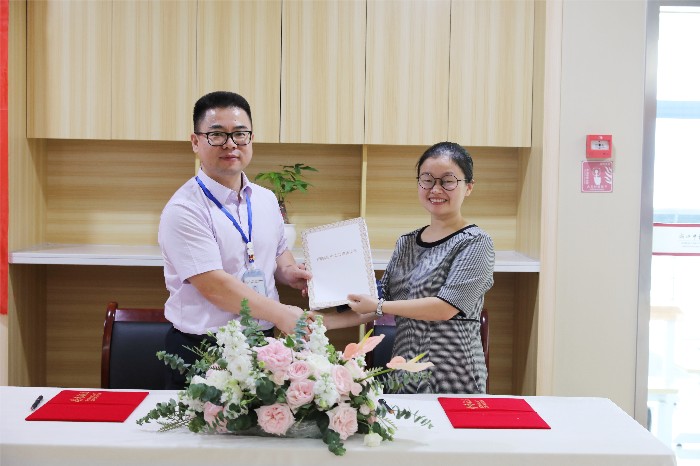 王庆来院长与杭州海沁企业管理有限公司负责人签署合作协议,双方建立合作关系。随后出席仪式的领导共同为我院Ⅰ期临床试验病房/生物等效性研究中心揭牌。