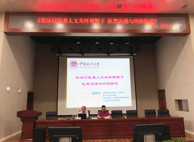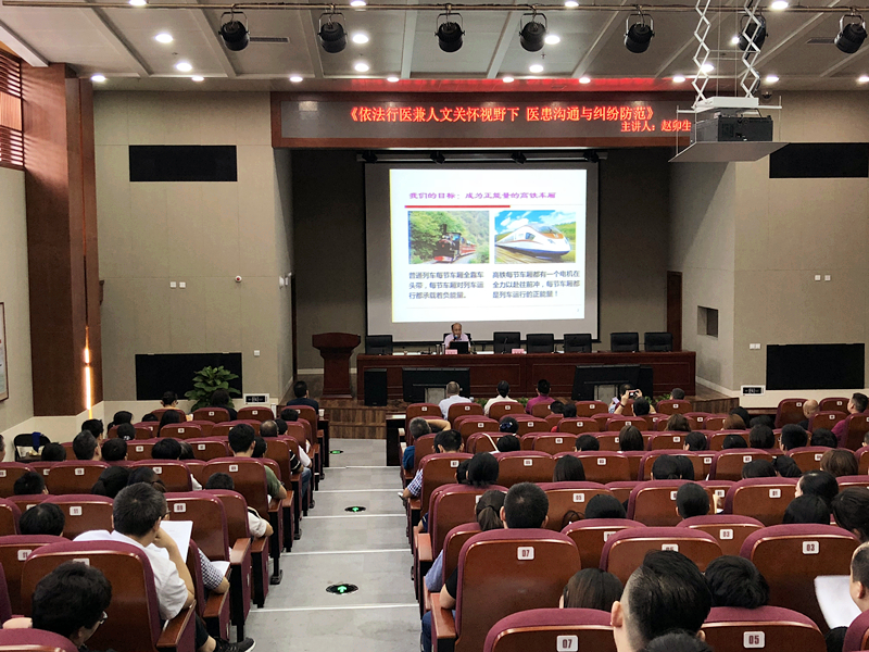 培训中,赵卯生教授详细阐述了当前的医患形势和新近出台的相关法律条文,利用大量生动的案例分析、涉医事件视频解析,结合当前医疗环境及易发生的医疗纠纷问题,深入浅出地讲解了医护人员应该如何依法执业,如何运用法律手段正确保护医患双方,有效防范医患纠纷。赵教授语言诙谐幽默,极具感染力和吸引力,现场氛围轻松愉快,高潮迭起、掌声雷动。
