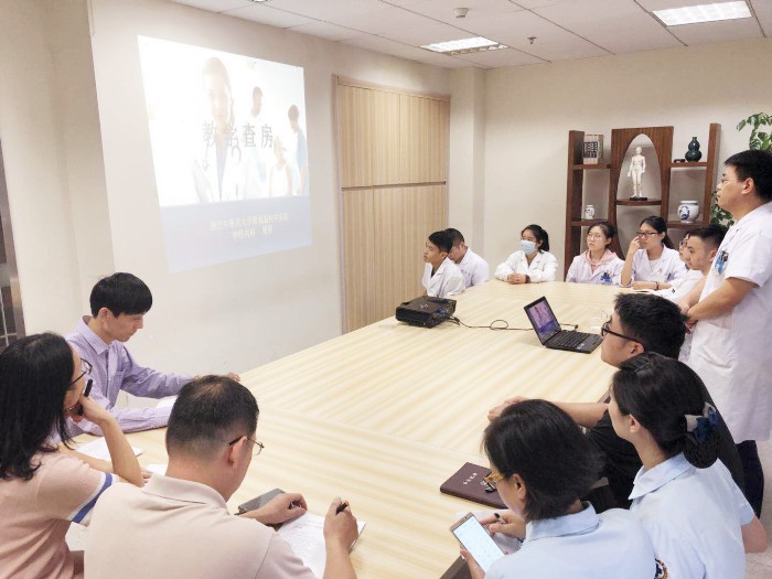 缪院长就相关方面进行了针对性的汇报。从医院院区、医院占地面积、医院社会声誉、医院人员、医院床位数等对医院概况进行了介绍;从医院门急诊量、出院人数、重点学科情况、科研立项、科研奖励、继教项目等对医院业务能力进行了说明;从教学制度、制度落实情况、教学活动、教学经费、教学用房、培训设施、师资队伍等对医院教学管理保障进行了讲解;从学校活动参与情况、资料报送、就业招生等对医院综合管理进行了阐述;最后言简意赅的总结了我院作为浙江中医药大学附属医院在各方面所作出的努力,并请各位专家进行指导。