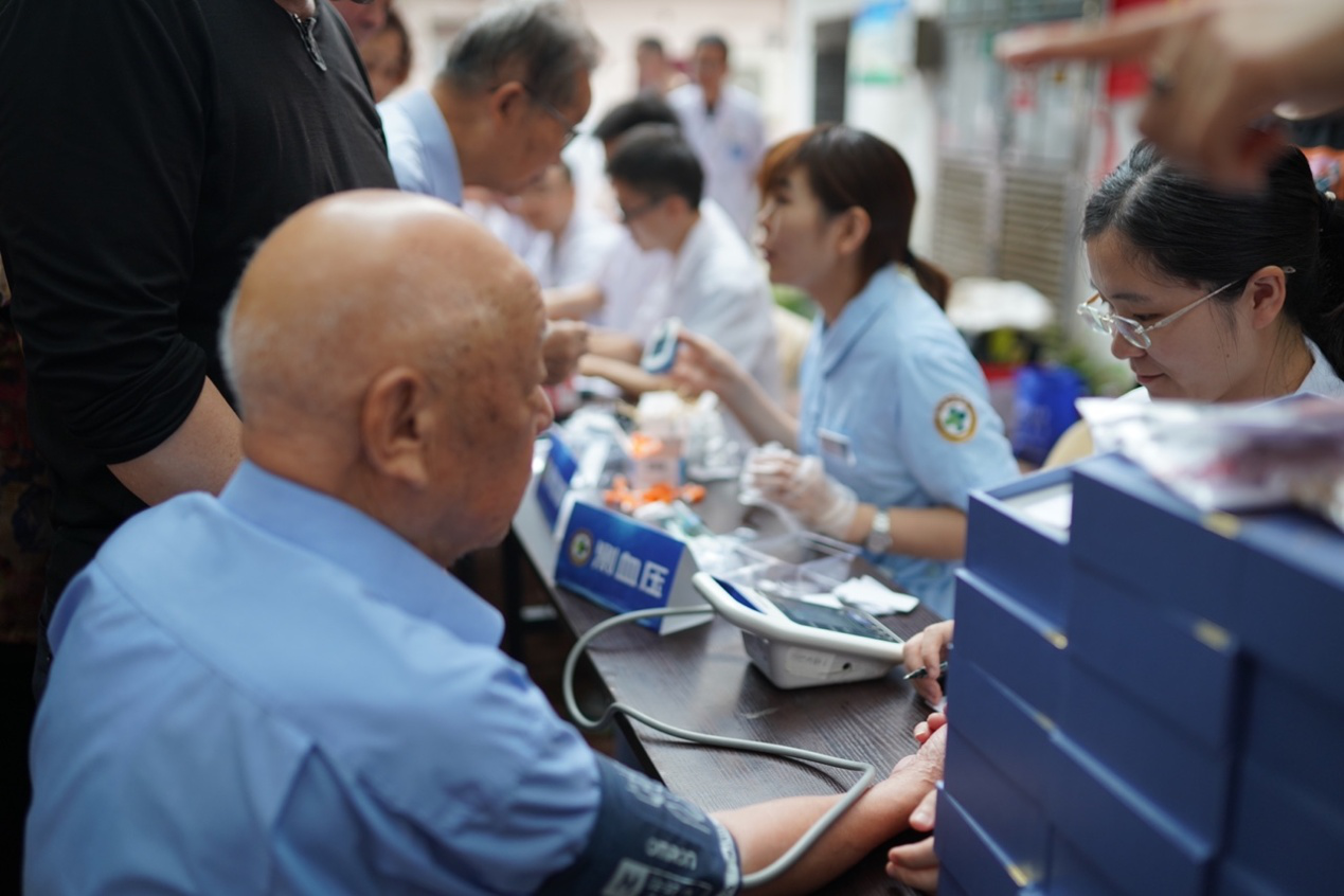 本次义诊活动受到了广大市民的热烈欢迎,现场秩序井然。慕名而来的市民前来健康咨询、互动体验。医护人员一边为前来就诊的社区居民进行免费测量血压、血糖,一边耐心细致地解答各种健康问题。