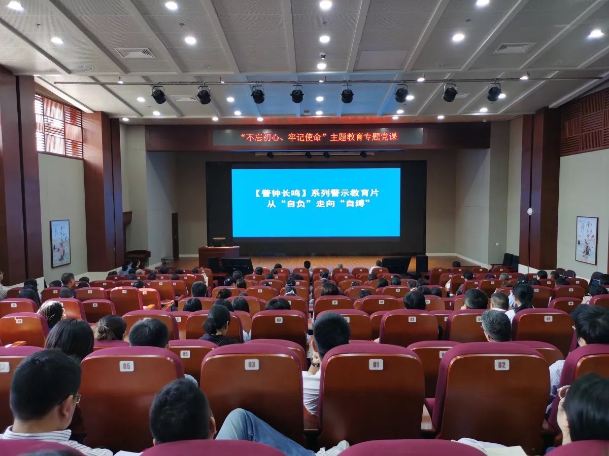 10月24日下午,为深入贯彻落实“不忘初心、牢记使命”主题教育,我院在主题教育专题党课上,组织广大党员干部职工观看了廉政教育片《一生清廉为国旗》和警钟长鸣系列的《从“自负”走向“自缚”》。