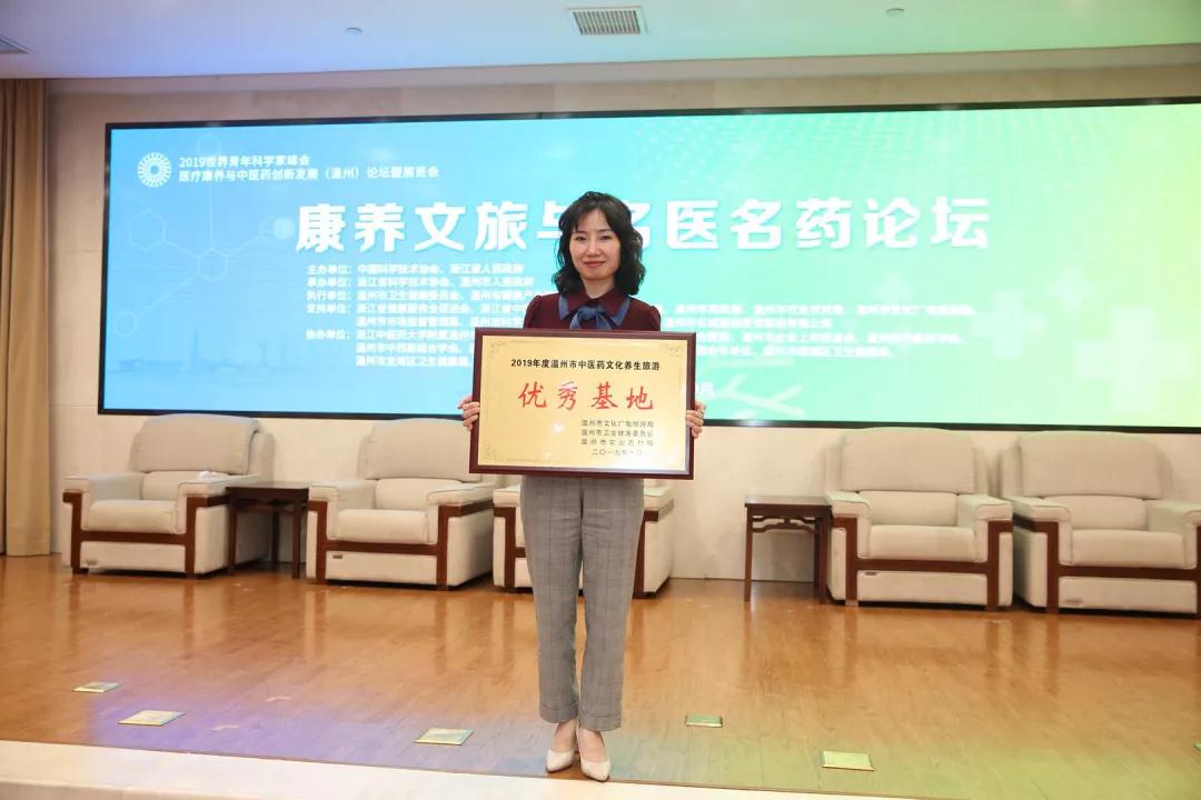 10月24日至27日,温州迎来了2019世界青年科学家(温州)峰会的盛大召开,“科学天团”齐聚温州,给温州注入了强劲的动能。在25日下午举行的康养文旅与名医名药论坛上,温州市中医院普安文化养生基地凭借全新的中医药文化养生旅游新模式,喜提“2019年度温州市中医药文化养生旅游优秀基地”称号。