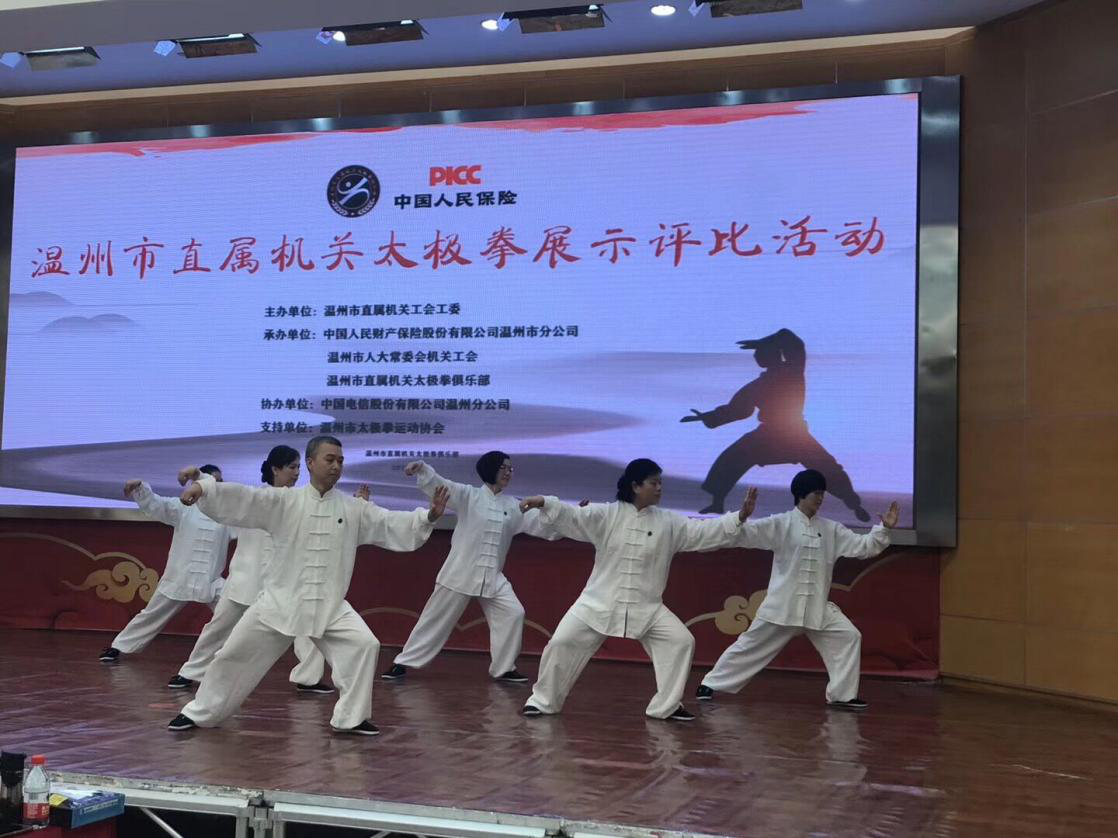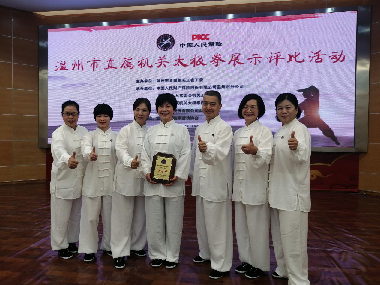 10月26日,温州市直属机关太极拳展示评比活动如期举行。团结一心、互相扶持、努力拼搏的温州市中医院太极拳队以高昂的气势和行云流水的动作脱颖而出,获得团体三等奖。