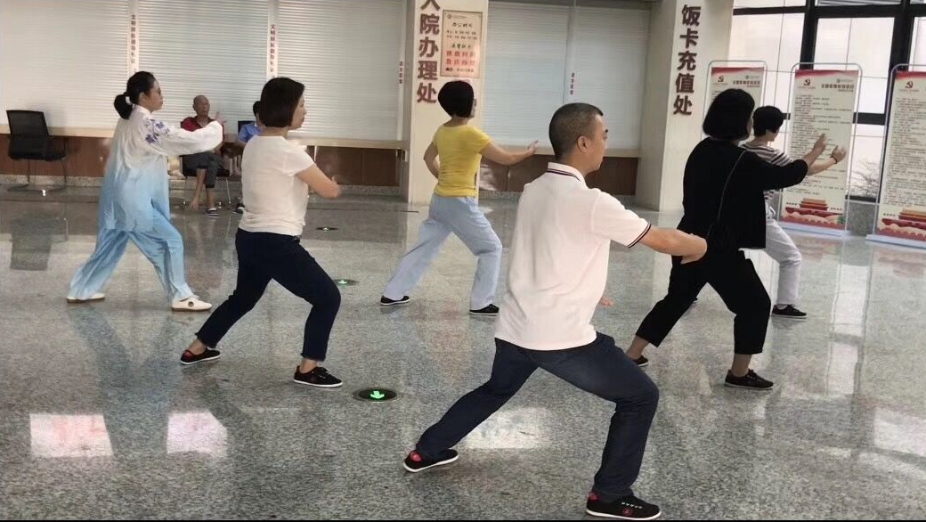 我院太极拳队成立于2018年7月,去年11月拍摄了太极拳宣传片视频,在医院门诊候诊大厅滚动播放,供职工和患者学习使用,并宣扬中医健身理念。同时也组织了爱好太极拳的职工及患者,每周指定时间中午在住院部大厅一同练习太极操。