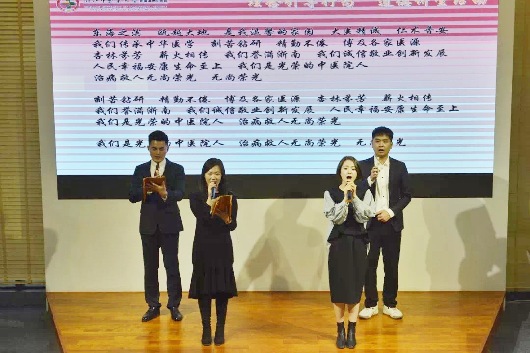“凡大医治病,必当安神定志,无欲无求...... ”活动以一段声情并茂的“黄帝内经诵读”拉开序幕,温州市中医院BE病房护士长孟盈盈、外科3护士长汪海敏、BE病房护士叶若男以及四位实习治疗师的朗诵,也引导着在场的人员要秉承一颗感同身受之心灵。《温州市中医院》宣传短片也在一曲古朴风韵的古典音乐中映入眼帘,传递出满满的正能量。