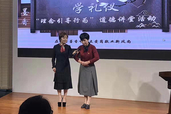 在学知识环节,温州市中医院原党委副书记黄爱林做了“理念引导行为”的主题演讲,结合医院具体情况,谈了她对社会主义核心价值观、爱岗敬业、职业道德文化等方面的认识,在场的医务工作者和全市各文明单位负责人都感同身受。现场,也有市民分享了自己工作中遇到过的种种,进行现场互动。