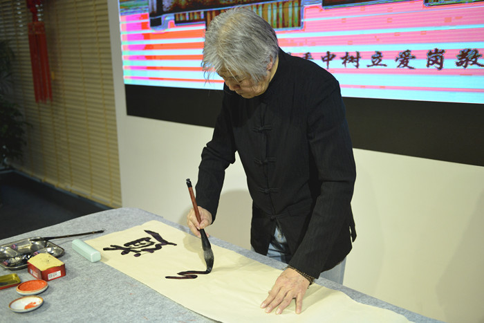 随后,温州市中医院之歌在四位医院同仁的带领下唱响全场。门诊部护士长戴清辉带领全场学习了礼节。活动更是邀请到温州著名书法艺术家谢慈恩老师现场泼墨,书写“道德讲堂”。