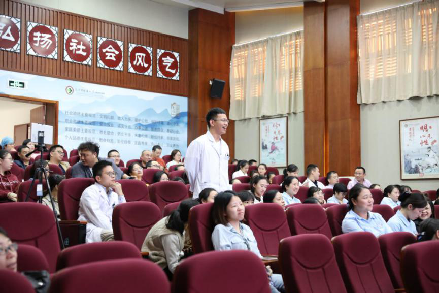 讲座由王庆来书记、缪心军副院长主持。共有150余名医护人员参加培训。
